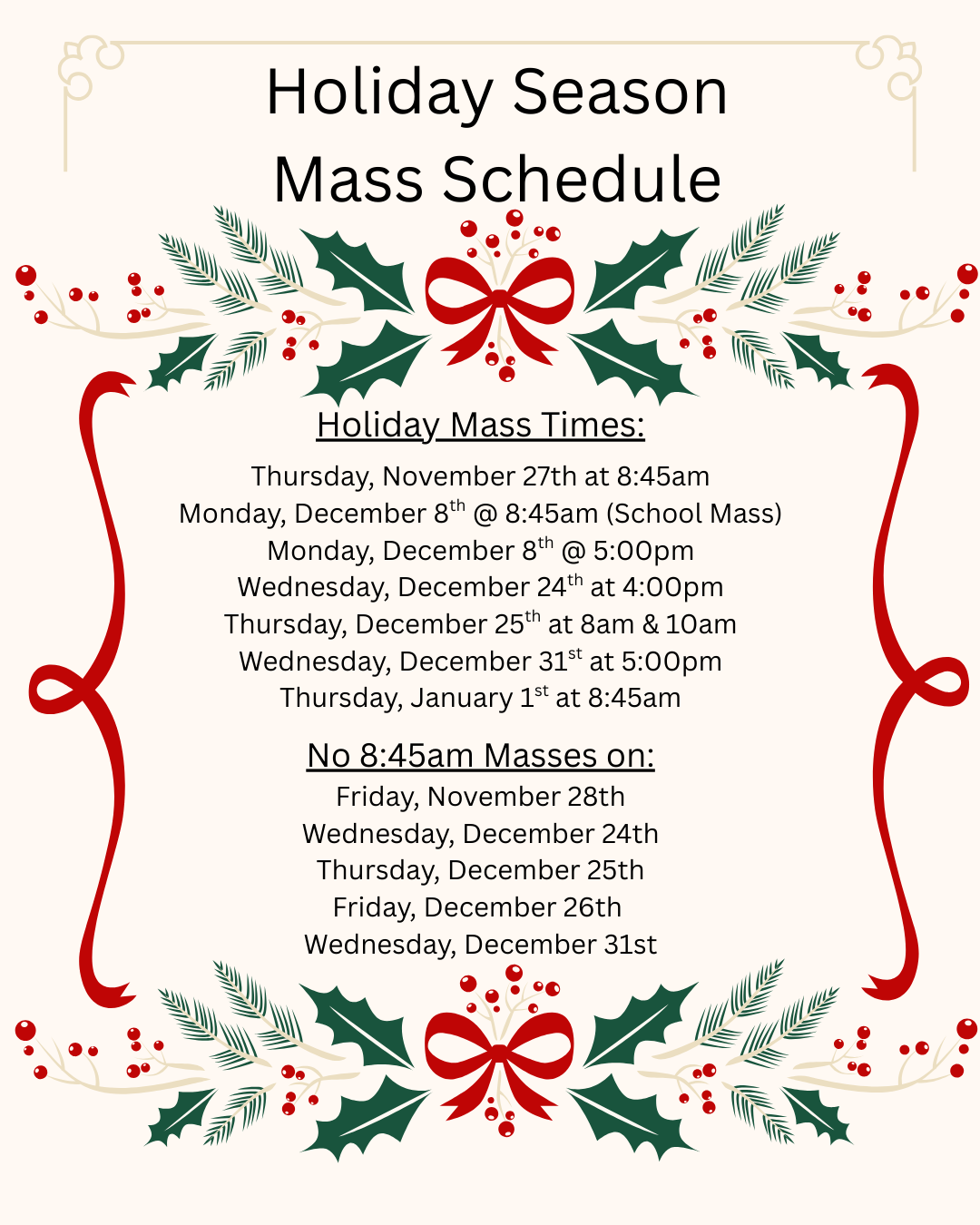 Wednesday, Thursday, & Friday: 8:45 AM Mass